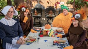 The wit of the cast begins in the opening scene with the actors’ revision of the popular song “The Twelve Days of Christmas” as it pertains to Thanksgiving which becomes even more humorous and absurd as the play moves forward.
