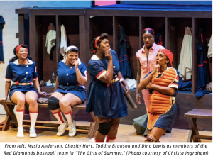 The Girls of Summer, which debuted in 2009, takes some of its inspiration from the history of Black women baseball players (and from the movie “A League of Their Own”). But this Gray play orbits around the mysterious disappearance of Coach Odessa Hicks (Lela Elam), who vanishes just before an exhibition game that could have been the triumph of her career.