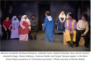 Main Street Players in Miami Lakes commissioned playwright Vinecia Coleman, a writer and actor based in the Minneapolis-St. Paul area, to write a different “Lysistrata” for the company. Coleman has retained the bones of Aristophanes’ classic in her “Christiana Lysistrata,” but she sets the play near a church in a rural village in western Europe during the High Middle Ages (which lasted from 1000 to 1300 A.D.).