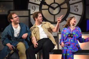 Starting with where our three main characters end up – at the cusp of middle age. Act One, Scene One: Bel Air, CA – 1976. The scene opens with an Overture by an uncredited live band that my eagle-eyed seatmate noticed playing, mostly hidden, in a back corner of the stage. They perform perfectly throughout the show under Aidan Quintana’s music direction. Here I might also mention the smooth scene changes under the expert guidance of director/technical director Andre Lancaster, and spot-on choreography by Liz DeBeer.