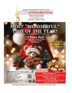 The Florida Intergenerational Orchestra (FLIOA), under the direction of its founder, Lorraine Marks Field, is ready to spread Christmas and Hanukkah spirit as she and her troupe of local musicians present a show called ‘The Most Wonderful Time of the Year,’ a festive concert featuring an impressive ensemble of musicians spanning multiple generations.