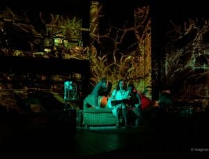 Although only a prop, the set of the now decaying plantation home by scenic designer Frank J. Olivia and the lighting by Tony Galaska was so vivid that the audience may have thought they were in the real living room of the old home.