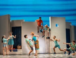 Along with the cast of 32 dancers and singers, credit director Phyllida Lloyd, choreographer Anthony Van Laast, lighting director Howard Harrison, sound and scenic designers Andrew Bruce and Bobby Aiken,costume designer Lucy Gaiger and music director Matthew Croft for making “Mamma Mia” dazzle.