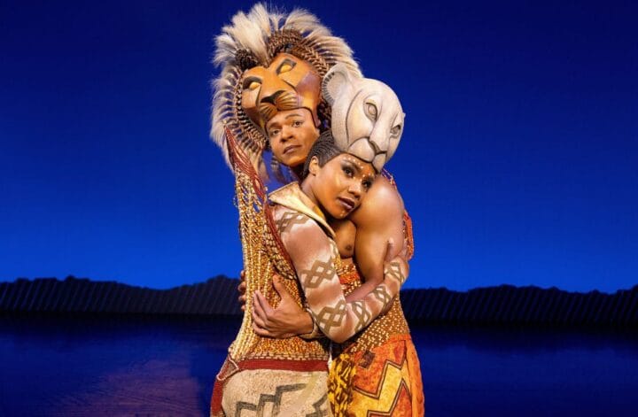 The musical opened as one could expect, or anticipate, if they can recall the iconic opening to the films. The opening number, “Circle of Life,” lifts the curtain with Rafiki (Mukelisiwe Goba) sings in the Zulu language while a rising sun appears in the background. Goba’s voice is confident and powerful, bubbling up nostalgia within me, making me think of the times I watched the VHS tape of the movie on the floor of my living room sitting at my dad’s feet. Mufasa (Darnell Abraham) and Sarabi (Maurica Roland) present Simba (Bryce Christian Thompson/Julian Villela/Erick D. Patrick) to all who are gathered at Pride Rock, except Scar (William John Austin), Mufasa’s brother who has a secret hatred for him. Thus begins one of the greatest stories for children ever told. Simba wins back the throne from his traitorous uncle with the help of Nala (Thembelihle Cele), the love of his life.
