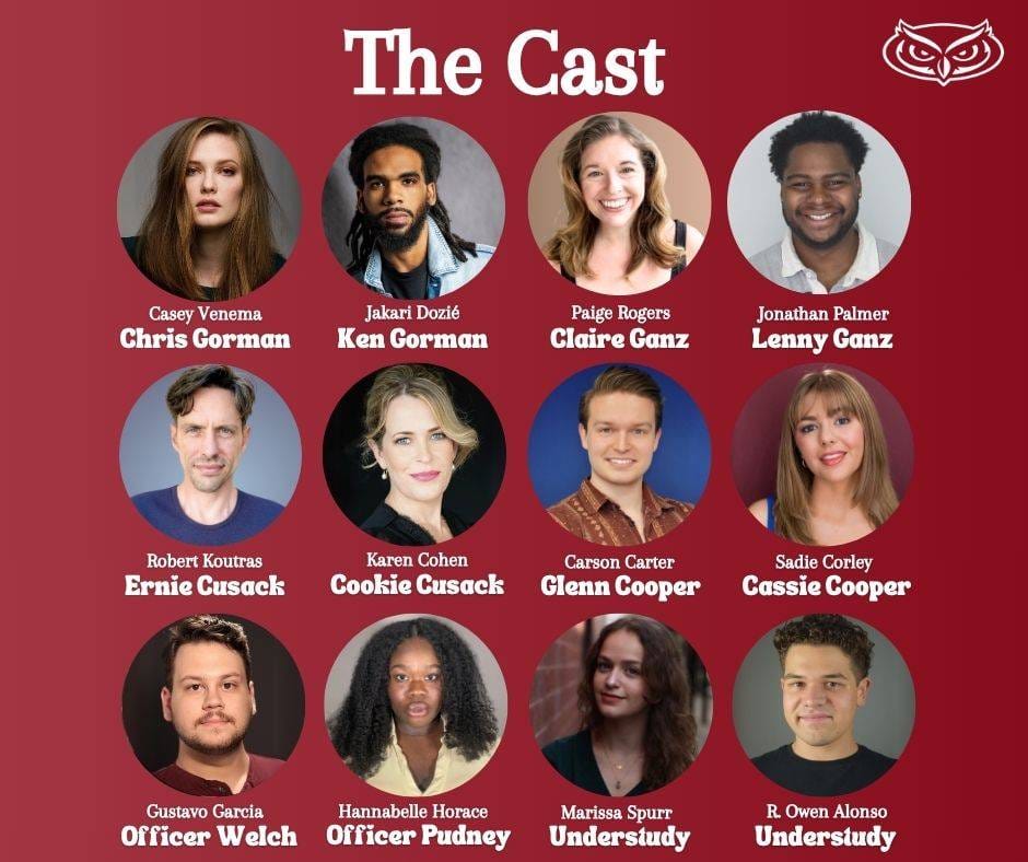 Admittedly, the show’s nine leads are all FAU theater-experienced MFA Graduate students – some of whom also boast external acting credits. And their attentive, hands-on director, FAU Associate Professor Lee Soroko, is also a widely experienced actor/director, movement specialist and fight choreographer. Still none of the actors’ parts were easy; all had lots of lines with split-second timing and gross slapstick action. They never missed a beat. From the first loud gunshot, these student pros had us in the palm of their hands and riveted to our seats.