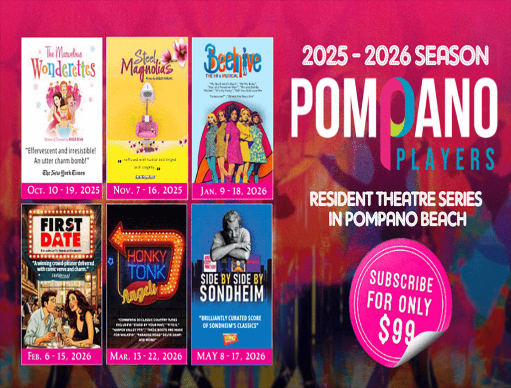 The lights are up in Pompano Beach! Pompano Beach Arts, in a creative partnership with Arts Center Management (ACM), proudly present their 2025 – 2026 Theater Season with a glowing lineup of classic favorites, trendy turns and Pompano Beach culture. Six off-Broadway productions, from toe-tapping musicals to heartfelt comedies, will take over the Pompano Beach Cultural Center’s stage from October 2025 through May 2026.
