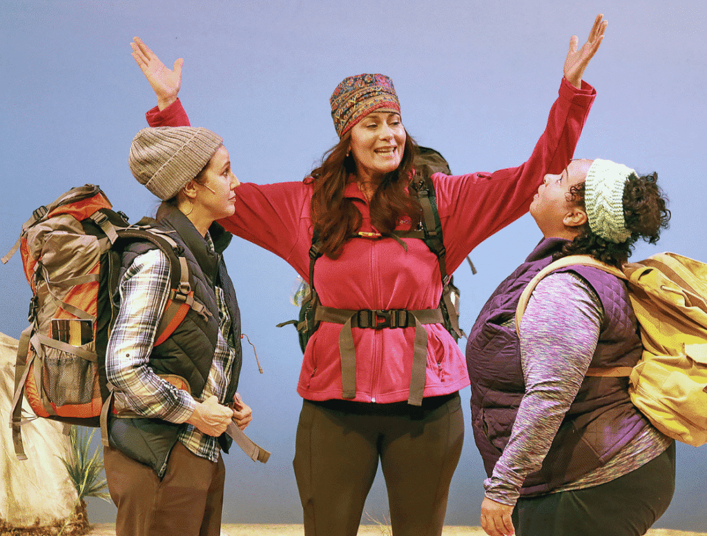 From left to right: Actresses Elizabeth Price (Sophie), Anna Lise Jensen (Monica) and Kareeman Khouri (Paula) meet for their journey in the one act comedy “Step By Step:, running now though August 10 at Actors Playhouse in Coral Gables.