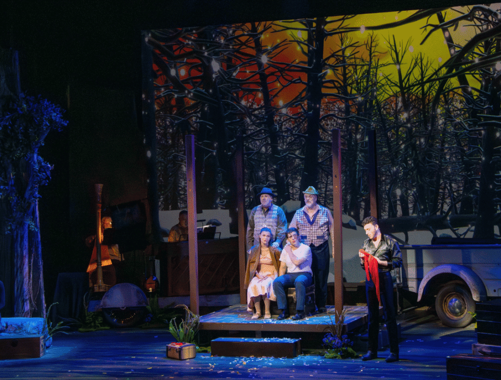 Everyone involved ultimately learns some lessons. About honesty, neighborliness, trusting the wrong people, and thinking the grass is always greener on the other side. As for love – the road to a true and lasting relationship is rarely straight and easy. Or as the musical’s fantastic (double entendre accepted), award-winning director Bruce Linser cites as his favorite poetic line from the musical in his Director’s Note: “Who understands why Spring is born out of Winter’s laboring pain? Or why we all must die a bit before we grow again?”