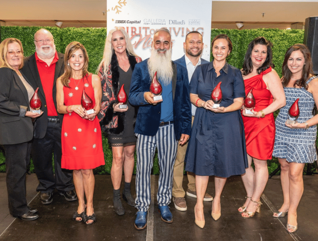 Guest host Fay Albernas of The FayWhat?! Show was joined onstage by Galleria Fort Lauderdale’s Marketing Manager Melissa Milroy to celebrate distinguished honorees and shining stars Don D’Arminio and Marc Martorana, Carey Warburton, Javier Iglesiasand Amanda Martin, Eileen LaMarca, Jamie Wasserman, David and Doreen Vozzola, and Jen Klaassens for their dedication to giving back and for championing causes that strengthen the South Florida community. Each received an art glass award commemorating their achievements and dedication.