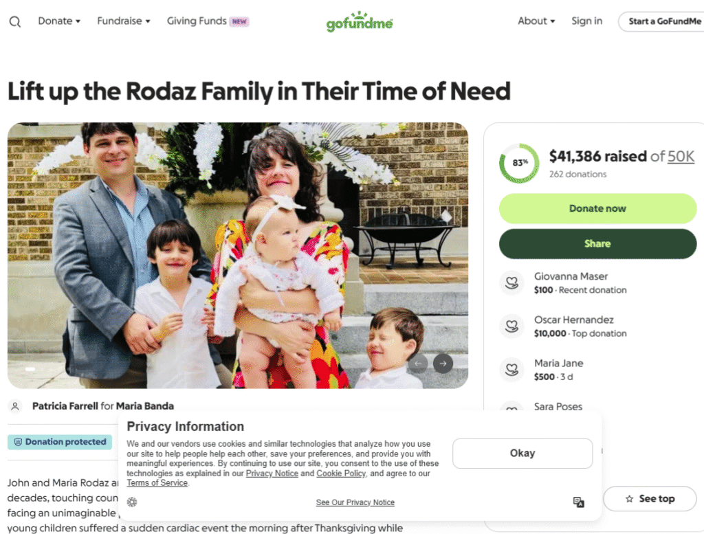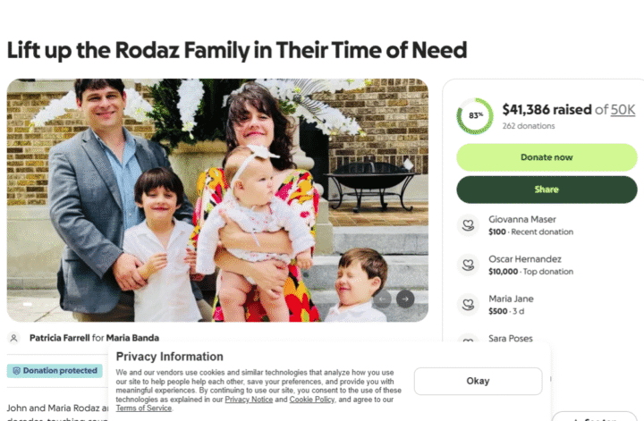 Her parents, John and Maria Rodaz, who are prominent figures in Miami’s arts scene as founders of the Area Stage Theatre Company & Conservatory, are maintaining a constant presence at her bedside while also caring for Rachel’s three young children.