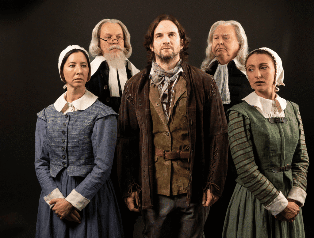Margery Lowe is an engaging presence as Ann Putnam, and even more compelling when she reemerges as unhinged prisoner Sarah Good. Karen Stephens is equally fearless and fierce as the betrayed Tituba, and an Act 2 scene that finds the two imprisoned together is an unexpectedly electric highlight.