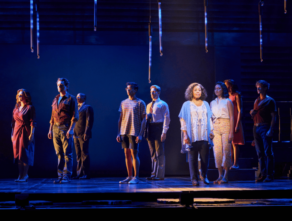 Costume designer Paloma Young has an important task: ensuring that the characters’ outfits demonstrate the ever-changing time periods, their evolution as people, and the visual throughline for the audience to connect all three life stages together. Needless to say, this is no easy feat, but she is absolutely up to the challenge! Even as time passes and their lives change, all three versions of Allie and Noah feel cohesive, with a single color unifying each character—Allie always in shades of blue, and Noah always in shades of brown—and giving further insight into who they are. Scenic design, by David Zinn and Brett J. Banakis, and lighting design, by Ben Stanton, are equally as immersive and impactful, demonstrating the powerful yet fluid nature of memory and its ability to transport a person anywhere. Similarly, Katie Spelman’s choreography seamlessly connects movement and memory and elevates the musical’s storytelling throughout.