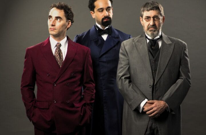 The Maltz Jupiter Theatre’s production of The Lehman Trilogy is nothing short of epic. Spanning several generations, multiple world-altering events, and three acts, the Tony-winning masterpiece tells the story of the trio of brothers, Bavarian Jewish immigrants who longed to make the American Dream come true, Henry Lehman (David Studwell), Emanuel Lehman (Noah Keyishian), and Mayer Lehman (Jeremy Rishe), and the rise and fall of the empire they so tirelessly built.
