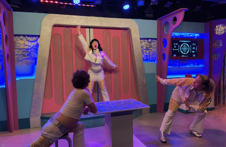 Nothing beats seeing a brand-new show by a brand-new theater company where you haven’t a clue (really) about what to expect and are completely blown away! I was instantly, and repeatedly, delighted and astonished during the entire 90-minute (no intermission) flashy space opera and lifestyle-parody show that’s out-of-this-world (literally and figuratively) creative, futuristic, and riotously funny while keeping satirically grounded in the inanities of contemporary life – especially the youth culture of Gen Z.