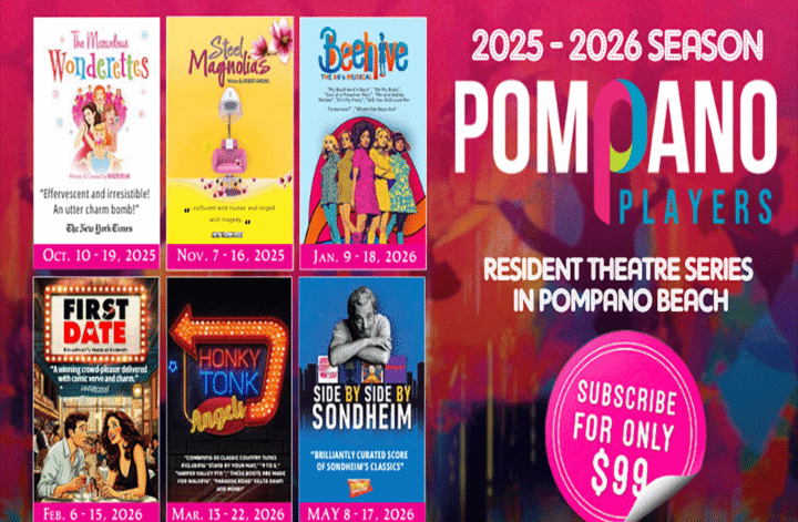 The lights are up in Pompano Beach! Pompano Beach Arts, in a creative partnership with Arts Center Management (ACM), proudly present their 2025 – 2026 Theater Season with a glowing lineup of classic favorites, trendy turns and Pompano Beach culture. Six off-Broadway productions, from toe-tapping musicals to heartfelt comedies, will take over the Pompano Beach Cultural Center’s stage from October 2025 through May 2026.